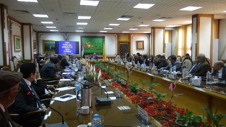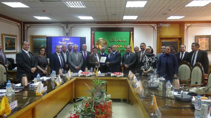 وفي مستهل الجلسة استعرض الدكتور محمود عبدالهادي، الأستاذ المتفرغ بكلية الزراعة والمدير التنفيذي لمركز التجارب والبحوث الزراعية بشوشة، تقريراً عن إنجازات المركز، وما شهده من تطوير وتحديث، وزيادة في الإنتاجية ومساحة الأراضي المستزرعة، ورفع كفاءة البنية الأساسية له خلال الفترة من نوفمبر2018 وحتى يونيه 2022، بقطاعاته للإنتاج الحيواني، والآبار والشبكات، والآلات والمعدات، وقطاع المحاصيل والحاصلات البستانية، وقام رئيس الجامعة بإهدائه درع الجامعة تقديراً لمجهوداته، مشيداً بعطاءه الكبير للجامعة وتفانيه في العمل لخدمتها، والنهوض بالمركز في كافة خدماته.