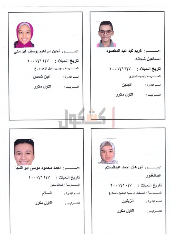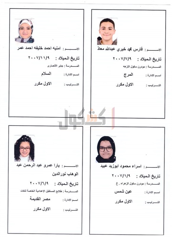 اما عن اسماء أوائل نتيجة الشهادة الإعدادية 2022 بالقاهرة، فيمكن معرفتها من الصور المرفقة.