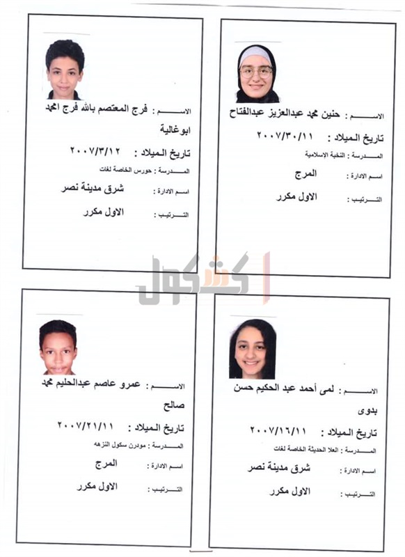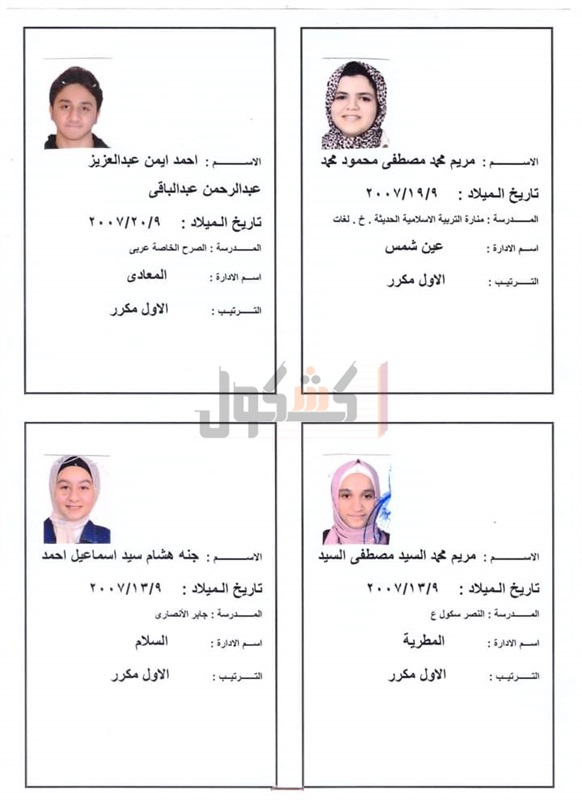 أسماء أوائل نتيجة الشهادة الإعدادية 2022 بالقاهرة