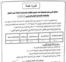 وأوضحت أنه يتم تحصيل قيمة تسليم الطالب الاستمارة الدالة على النجاح على النحو التالي: