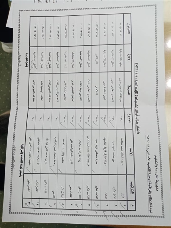 ٢٧٨ درجة ، والمركز التاسع مكرر بمجموع درجات ٢٧٨على مستوى المحافظة، الطلاب مازن محمد