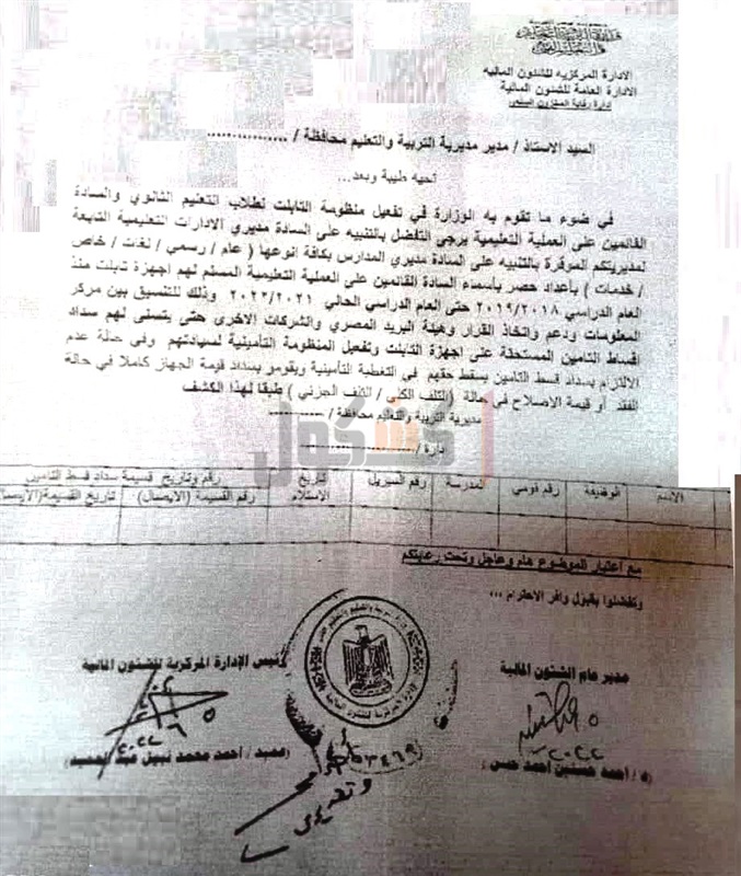 التعليمية المسلم لهم أجهزة التابلت منذ عام 2018/2019 حتى العام الدراسي الجاري