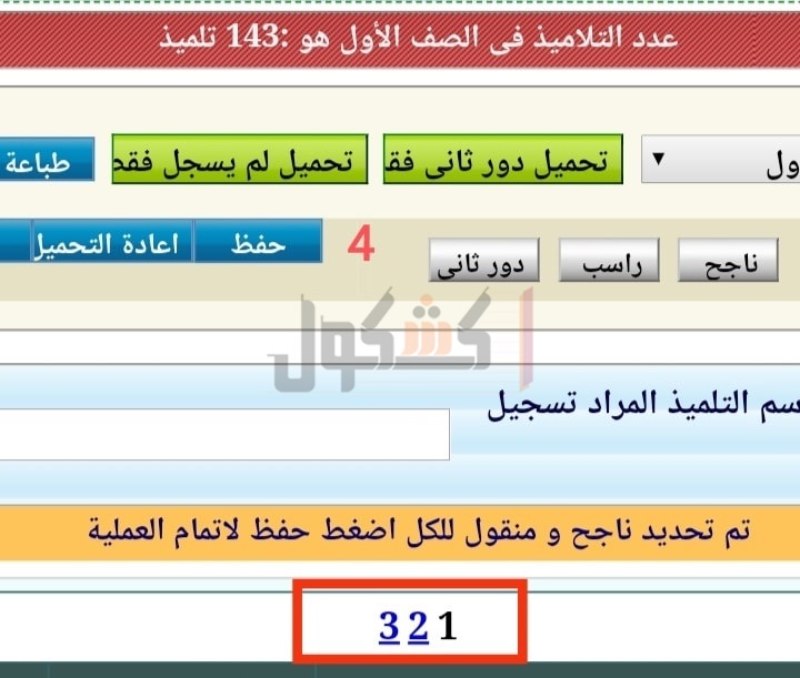 1 2 3 وممكن اكثر حسب عدد الطلبة في كل صف وهذه أرقام الصفحات سيتم الضغط على صفحة