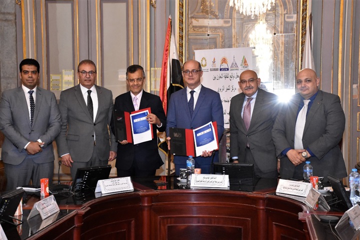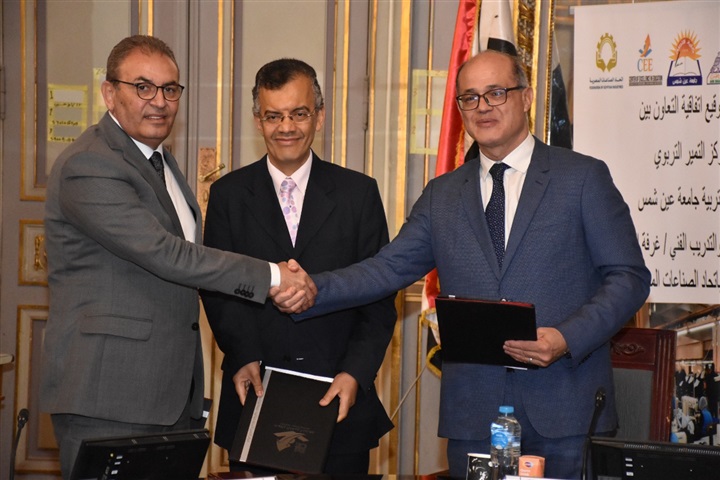 وقع الدكتور أيمن صالح نائب رئيس جامعة عين شمس لشؤون الدراسات العليا والبحوث، والدكتور حازم راشد عميد كلية التربية جامعة عين شمس ومحمد عبدالسلام رئيس مجلس إدارة غرفة الملابس الجاهزة ووكيل لجنة التدريب والتعليم الفني باتحاد الصناعات المصري اتفاقية تعاون مشتركة بين مركز التميز التربوي بكلية التربية جامعة عين شمس ولجنة التدريب والتعليم الفني "غرفة الملابس الجاهزة باتحاد الصناعات المصرية"، وذلك في إطار التعاون والتكامل بين الجامعات ومؤسسات الدولة المصرية.