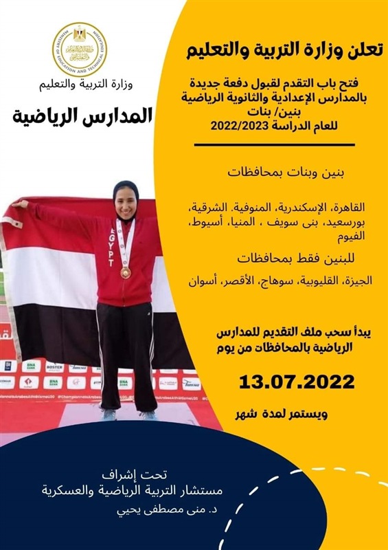 التعليم تعلن فتح باب التقدم للمدارس الرياضية الإعدادية والثانوية 13 يوليو