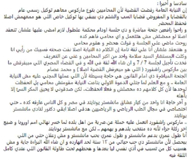 وأكد «عصام» الطالب في كلية الطب، وأحد أبناء محافظة الشرقية، أنه تواصل مع ماركوس راشفورد، عن طريق بعض الأشخاص في بريطانيا، مضيفًا: «قالوا إنه مايعرفش حاجة عن القضية ولا يُدير حسابه الشخصي، لكن في شركة راعية ماسكة الأكونتات بتاعته».