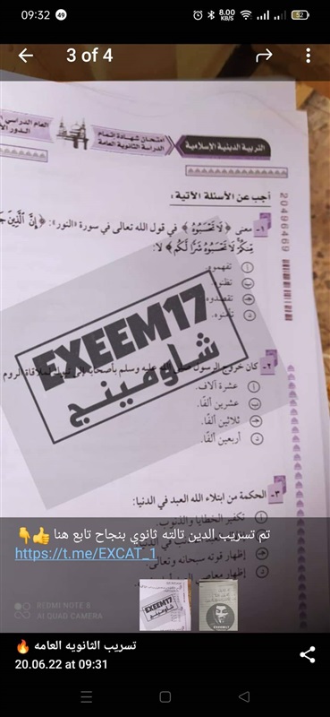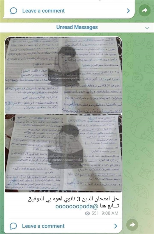 عاجل.. تداول أسئلة وإجابات امتحان مادة التربية الدينية للثانوية العامة بالتليجرام