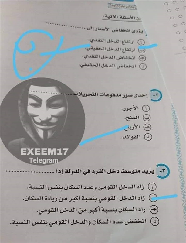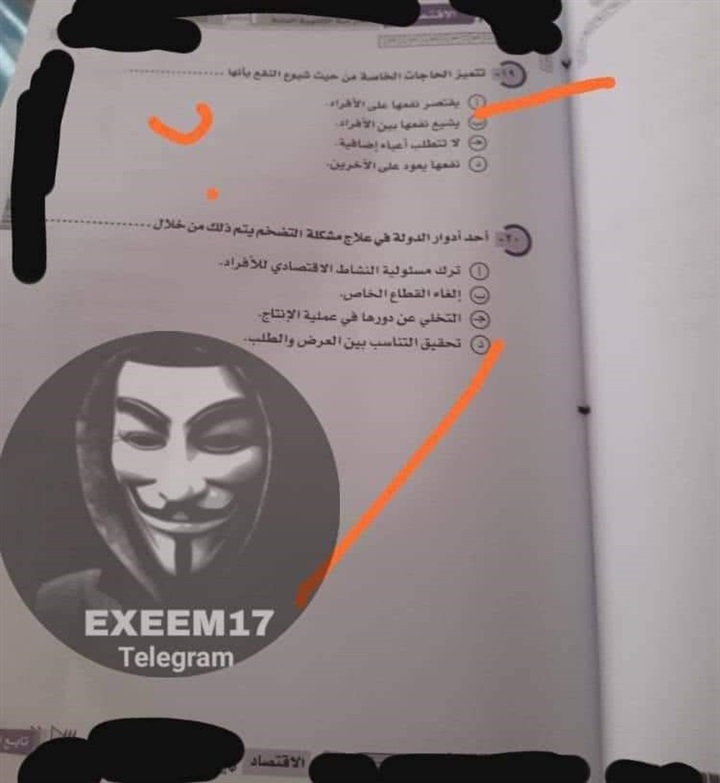 تداولت صفحات الغش الإلكتروني، عبر تطبيق التليجرام، أجزاء زاعمين أنها من امتحان مادة الاقتصاد لطلاب الثانوية العام الذي يؤديه الطلاب حالياً داخل اللجان، ضمن المواد الغير مضافة للمجموع، بعد مرور نصف ساعة من بدء لجنة الامتحان.