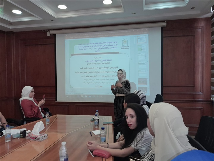 حيث قدمت الطالبة رحاب عبدالصمد محمد من طلاب جامعة حلوان عرضا تقديميا عن مساعدة المحيطين بها في قريتها بمحو أميتهم واستعانت بوالدتها في تعليمهم وقامت بفتح عدة فصول حيث تمكنت في تحرير أمية عدد (٢٧) مواطن، كذلك قدمت عرضا تقديميا الطالبة إسراء محمد أحمد من طلاب جامعة حلوان والتي عاونها والدها وأخاها في عملية الحصر والتعليم واستطاعت بالإرادة تحرير عدد ( ٢٠) مواطن من الأمية.