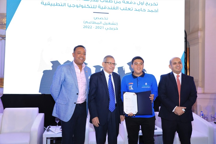 احتفلت وزارة التربية والتعليم والتعليم الفني، بالتعاون مع مؤسسة "مصر الخير"، اليوم، بتخريج الدفعة الأولى من مدرسة الشهيد النقيب أحمد حامد تعلب الفندقية للتكنولوجيا التطبيقية التي تعمل بالتعاون مع شركة أمريكانا وشريك التعليم الدولي City & Guilds.