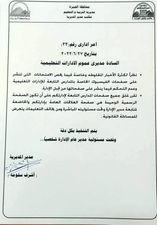 مطالباً الجميع يتنفيذ القرار والالتزام به وسرعة إغلاق صفحات المدارس نظرا لكثرة الشائعات والأخبار المغلوطة .