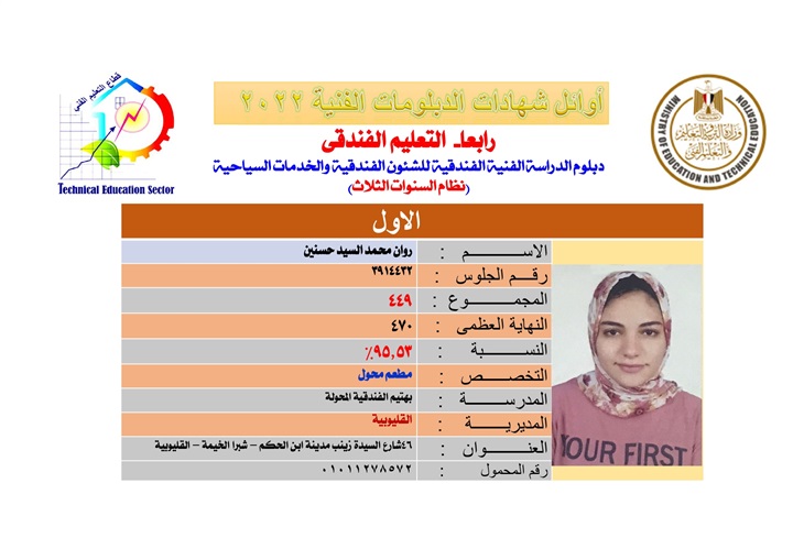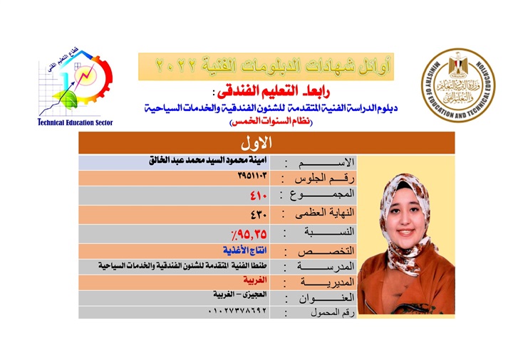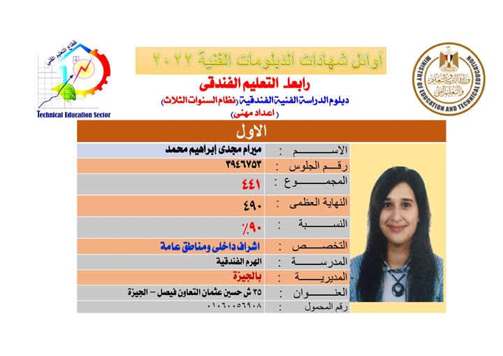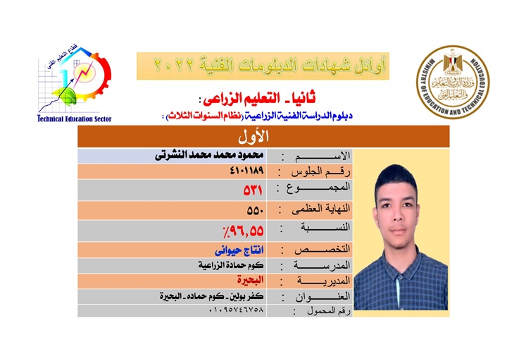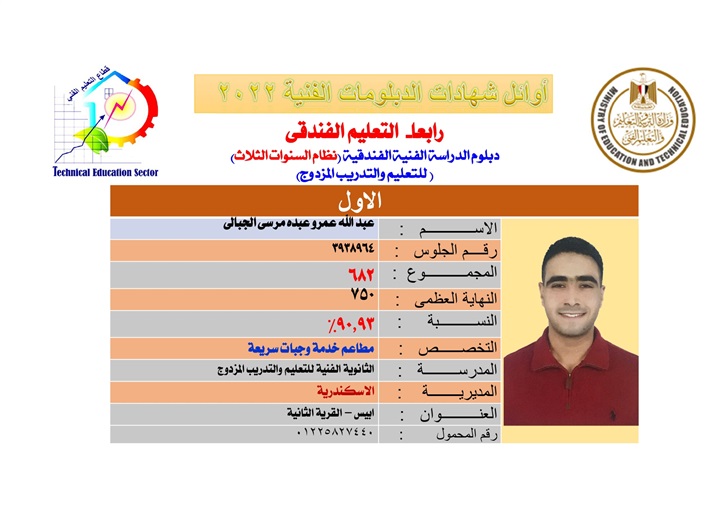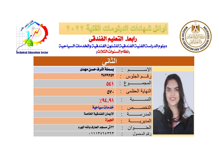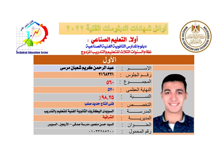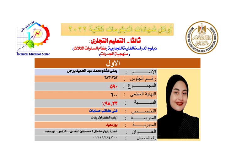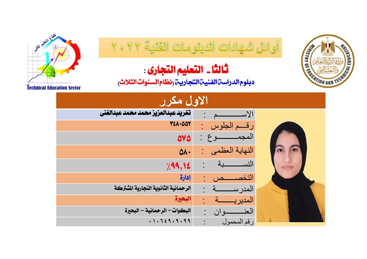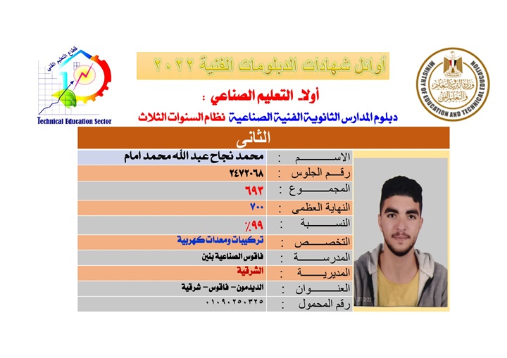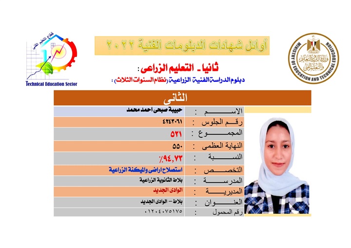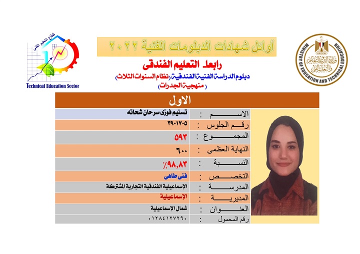للتعليم الفنى، أوائل شهادات الدبلومات الفنية لعام 2022 تليفونيا والذين بلغ عددهم