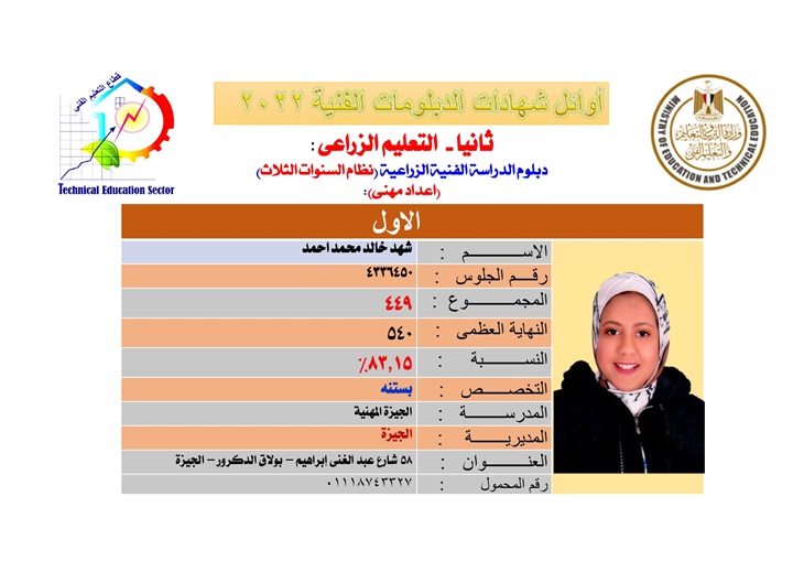 ننشر أسماء وصور أوائل الدبلومات الفنية 2022