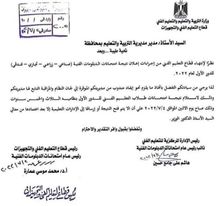 وجهت وزارة التربية والتعليم والتعليم الفني، خطابا للمديريات التعليمية، بضرورة ارسال مندوب إلى لجان النظام والمراقبة صباح غد الإثنين 4 يوليو.