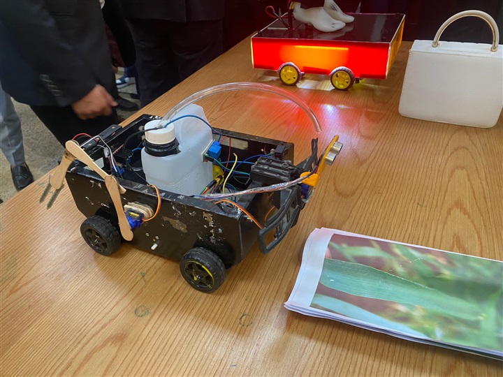 وتمكن أيضا مجموعة من الطلاب من ابتكار روبوت ذكي يتمكن من مساعدة المزارعين في تحديد مواعيد الرى والأسمدة واكتشاف أمراض النباتات.