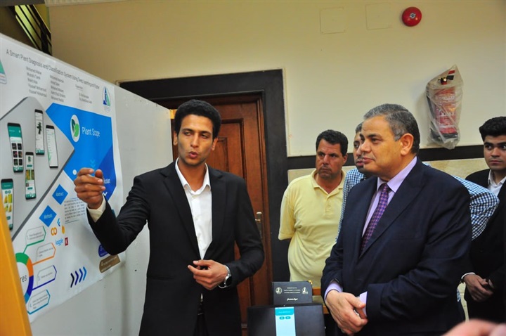 واستمع الدكتور عبدالرازق دسوقي رئيس الجامعة، إلى شرح من طلاب نفذوا منظومة ذكية لتشخيص الأمراض مثل أمراض الصدر والعيون والأمراض الجلدية.