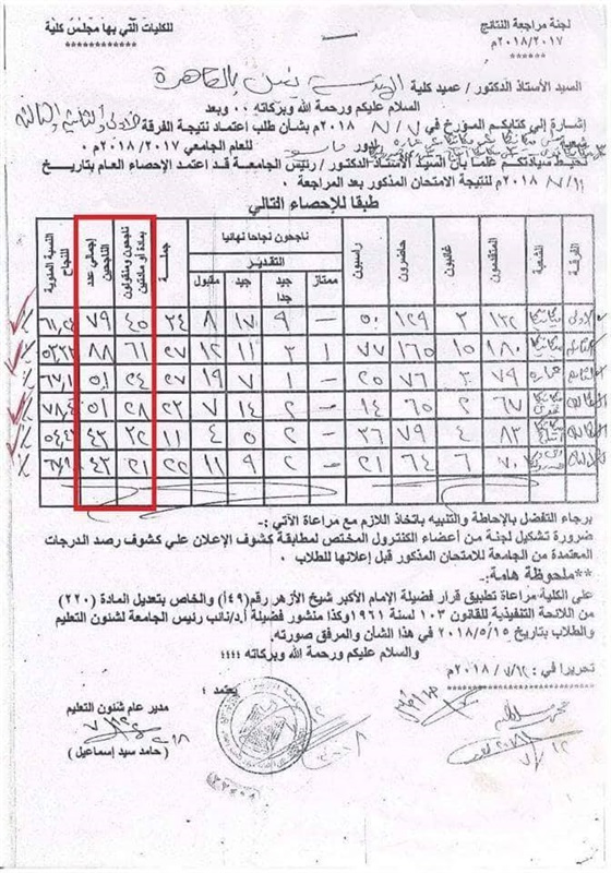 وحصل "كشكول" على النسبة الحقيقية لنجاح الطلاب حيث تضمنت: