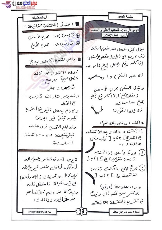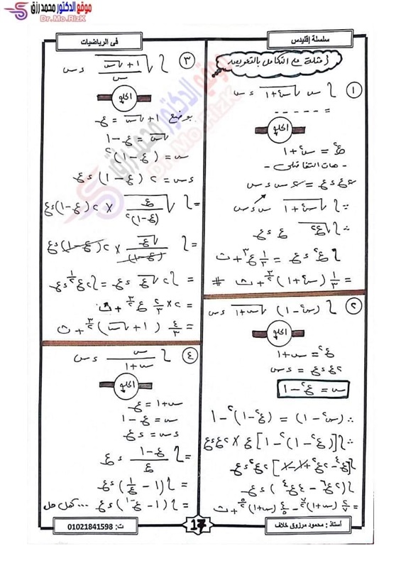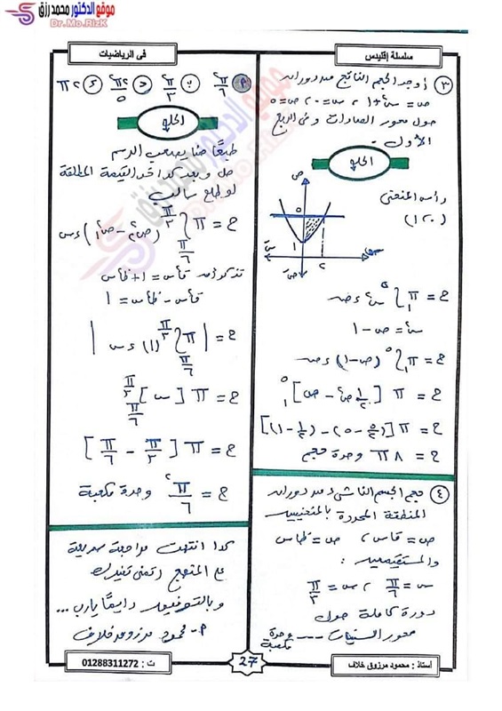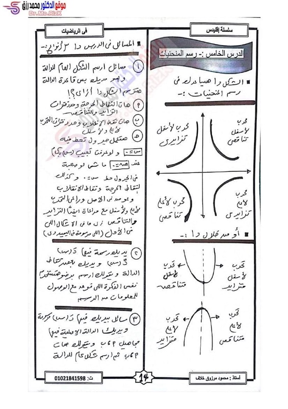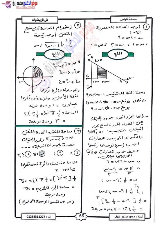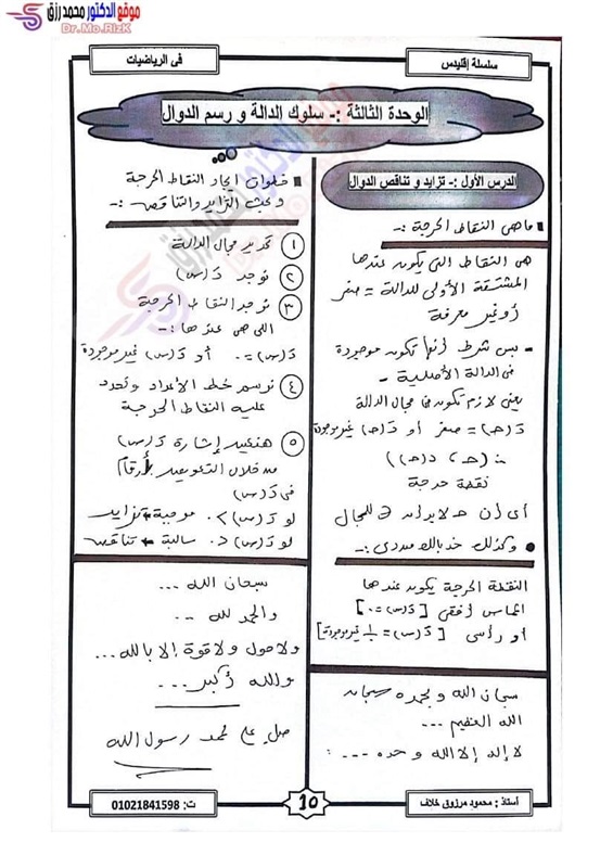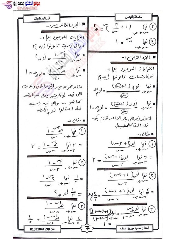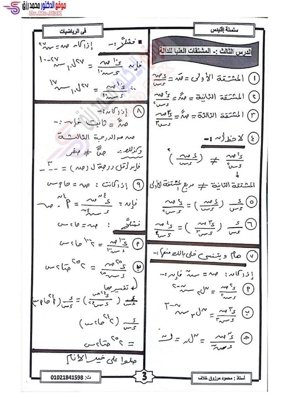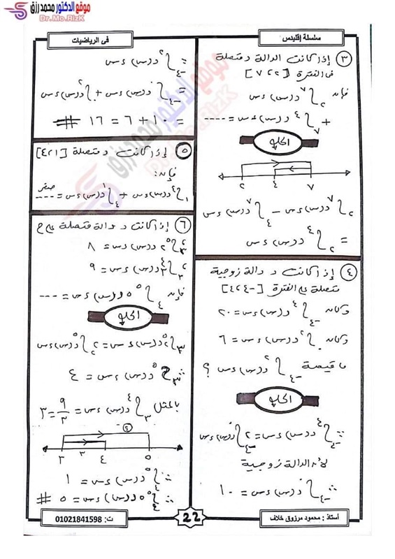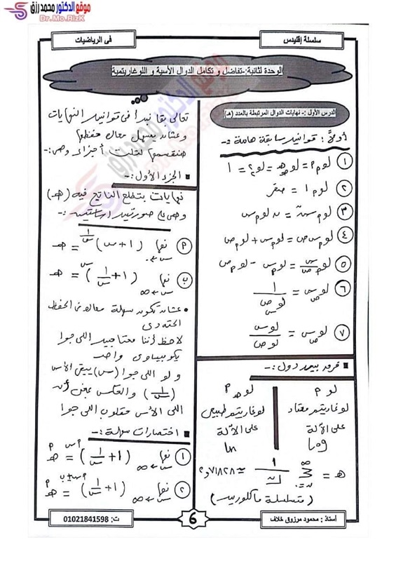 ننشر مراجعة ليلة الامتحان فى التفاضل والتكامل لطلاب علمي رياضة بالثانوية العامة