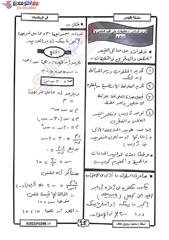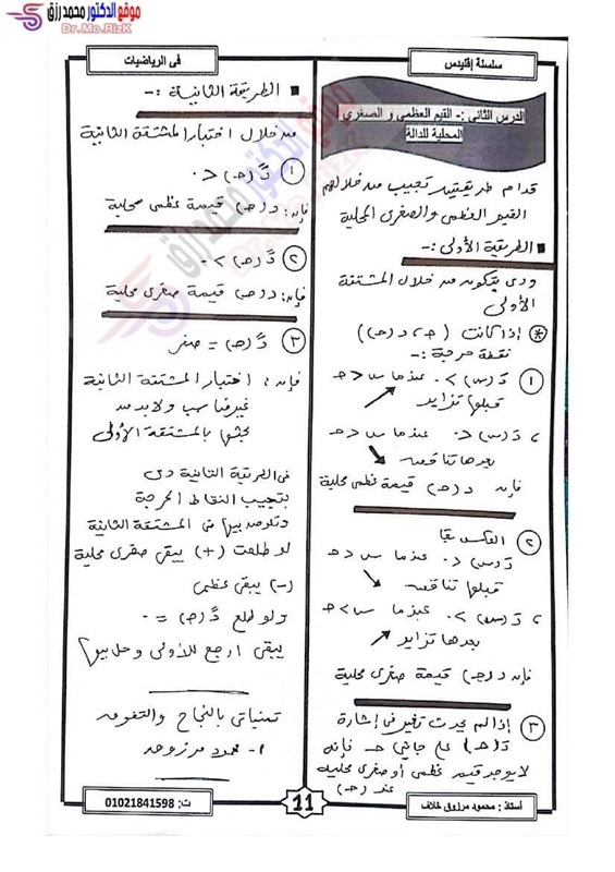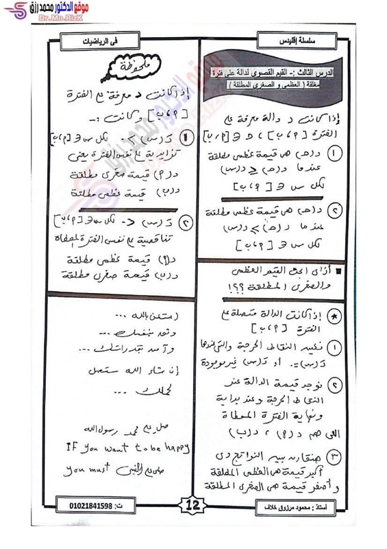 "كشكول" مراجعة ليلة الامتحان فى مادة التفاضل والتكامل لطلاب شعبة علمي