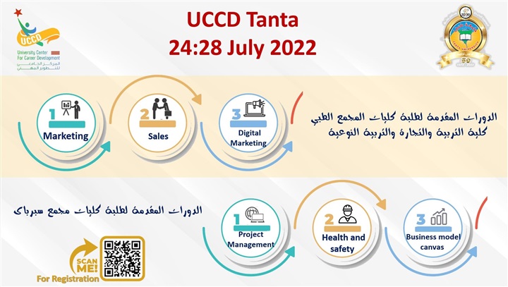 الدورات المقدمة لطلاب كليات المجمع الطبي وكلية التجارة والتربية والتربية النوعية في الفترة من 24:28 يوليو 2022