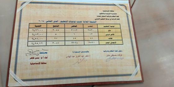 99.36 نسبة النجاح بالدور الثاني بإعدادية الإسماعيلية