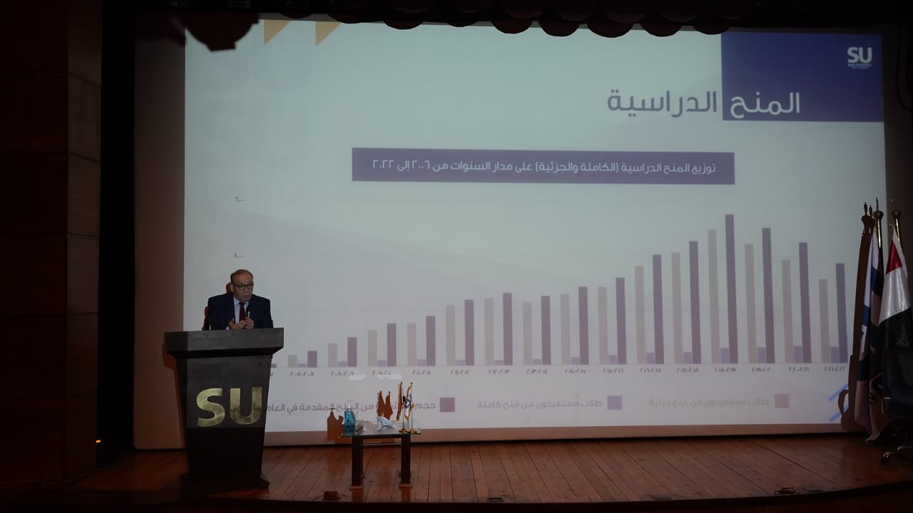 وكشف عن تطور المنح الدراسية حيث أن الجامعة لديها نوعين من المنح وهى منح كلية بنسبة 100% وتكون لأبناء منطقة وسط سيناء وهذه المنطقة الأكثر فقرا والتى تحتاج إلى تنمية شديدة، ومنح لأبناء سيناء والعاملين بها 10 سنوات وأكثر، بالإضافة إلى منح التفوق العلمى لطلاب الثانوية العامة ويستمر معهم بشرط النجاح فى الدراسة.