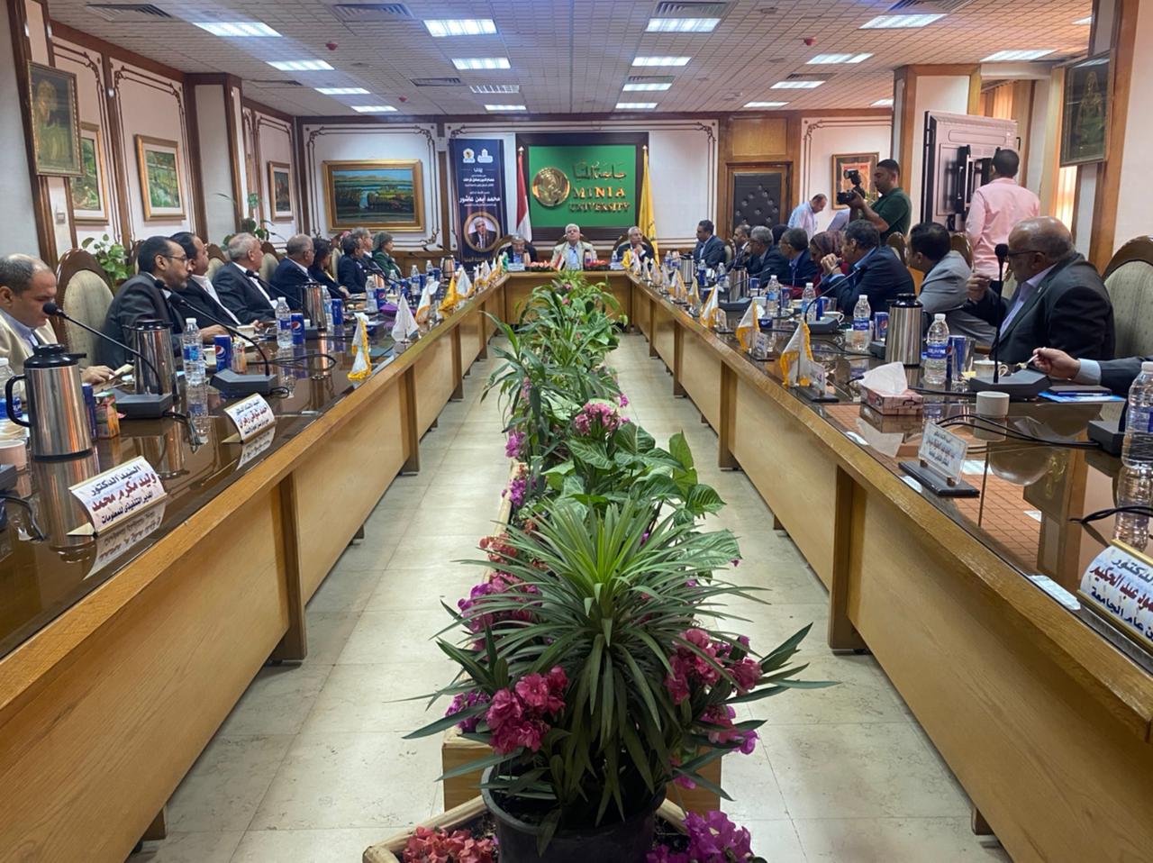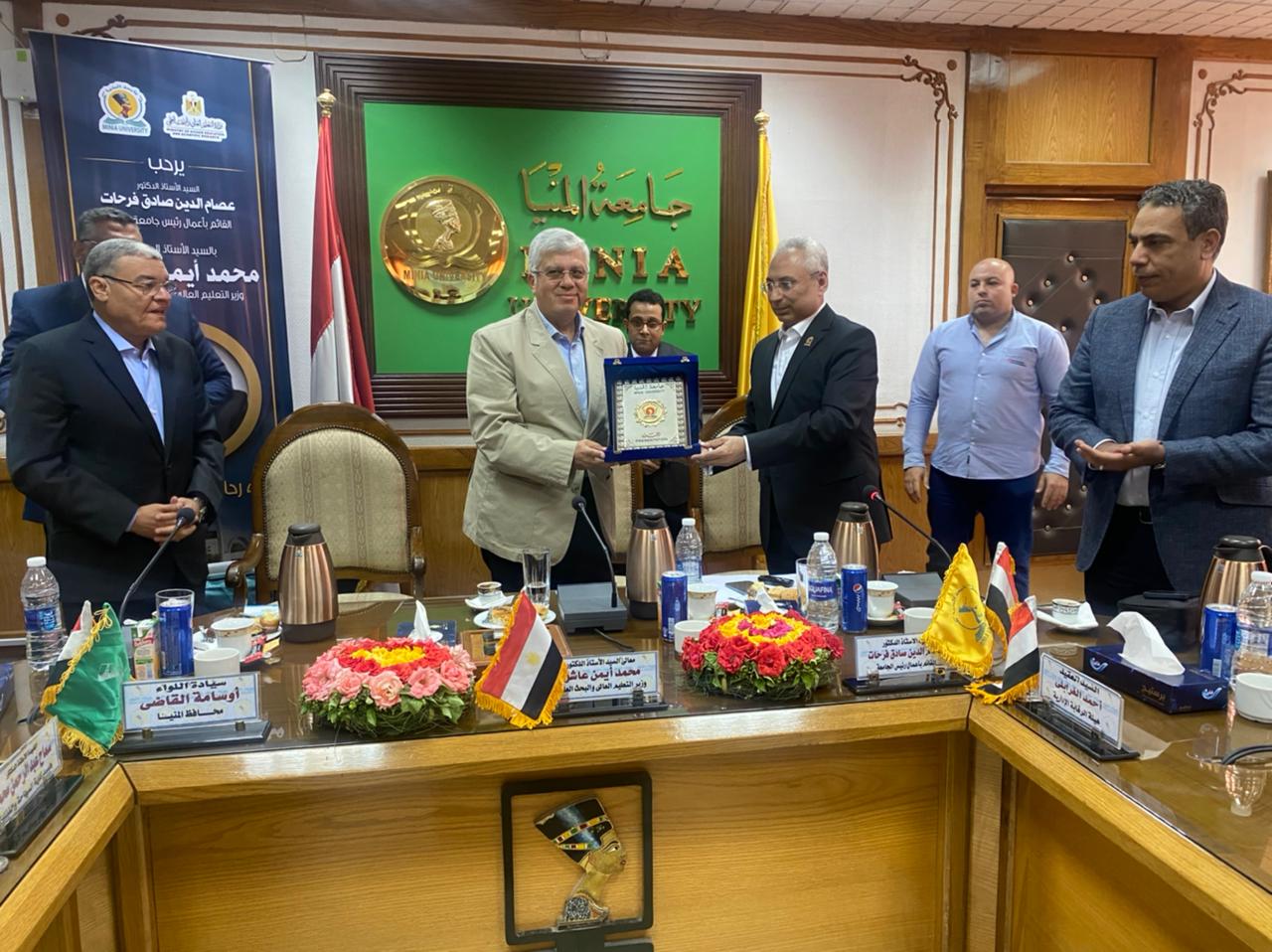 شهد الدكتور محمد أيمن عاشور وزير التعليم العالي والبحث العلمي، انعقاد مجلس جامعة المنيا، بحضور اللواء أسامة القاضي محافظ المنيا، والدكتور عصام فرحات، القائم بأعمال رئيس الجامعة، وعمداء الكليات، ومدير مركز ضمان الجودة والاعتماد، والمدير التنفيذي للمعلومات، وأمين عام الجامعة، والجهات الرقابية، وذلك في أولى زيارات جولاته التفقدية التي يُجريها؛ لمتابعة وتفقد جامعة المنيا الأهلية، والمشروعات الإنشائية الجارية بالجامعة، كمستشفى الثلاثي الجامعي، ومركز الاختبارات الالكترونية، ومبنى كلية دار العلوم الجديد.