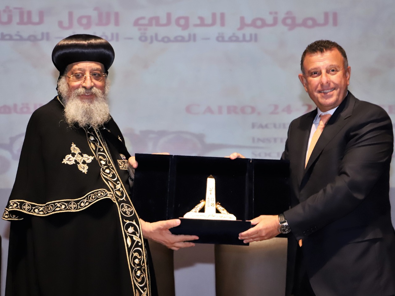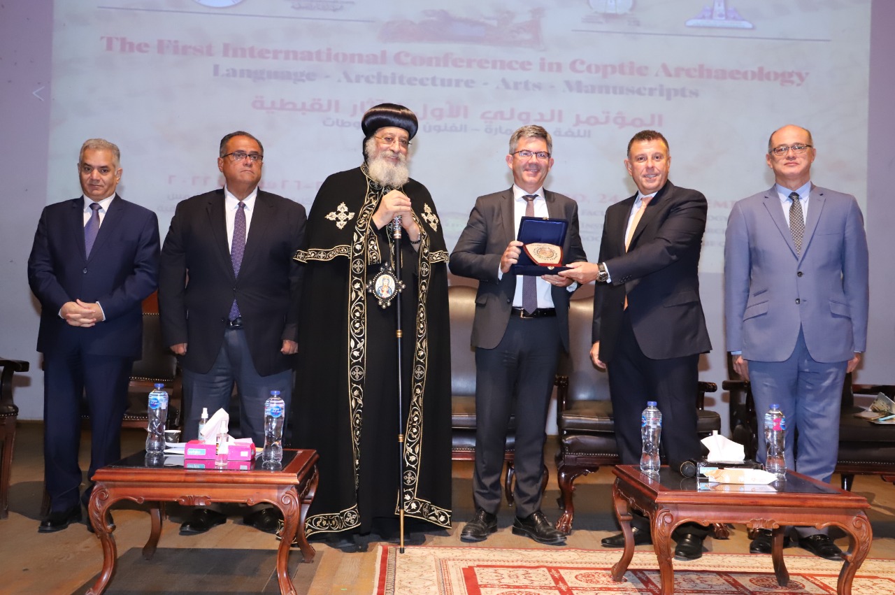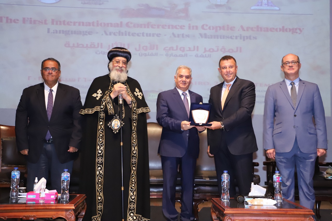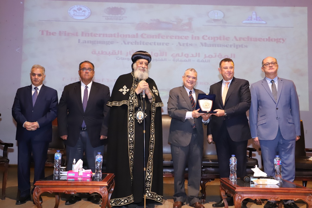 وفي ختام الجلسة الافتتاحية كرم الدكتور محمود المتيني قداسة البابا تواضروس الثاني بابا الإسكندرية وبطريرك الكرازة المرقسية، والدكتور ممدوح الدماطي وزير الآثار الأسبق وعميد كلية الآثار السابق، والدكتور لوران كولون مدير المعهد الفرنسي للآثار الشرقية بالقاهرة، والدكتور مراد وهبة نائب رئيس جمعية الآثار القبطية.