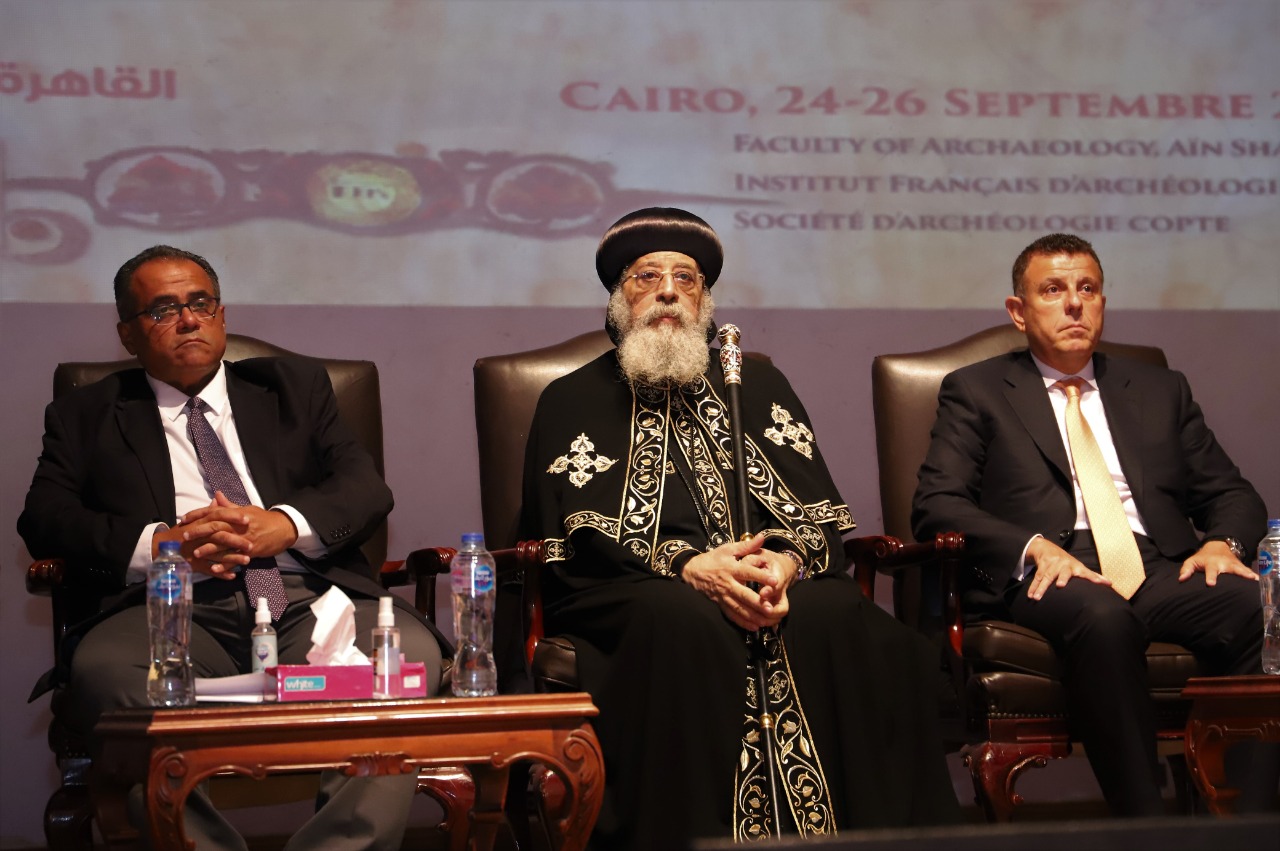 وأكد قداسة البابا تواضروس الثاني بابا الإسكندرية وبطريرك الكرازة المرقسية في كلمته أن الحضارة المصرية كالكتاب المملوء بالصفحات والحضارة القبطية هى إحدى صفحات هذا الكتاب، مضيفا أن الحضارة توجد تحت جلود المصريين، فهذا الوطن ابوه التاريخ وامه الجغرافيا، مشيدا بالتعاون مع المعهد الفرنسي للآثار بالقاهرة وجمعية الآثار القبطية، وهو ما يظهر قيمة مصر وتميزها وتفردها أمام العالم، لافتا إلى تميز مصر وتفردها بمخزونها الحضاري والثقافي مما منح المصريين جذور راسخة وهوية حضارية تثبت المصريين عند الشدائد.