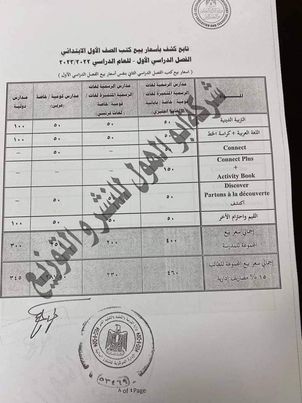 ـ اسعار كتب الصف الأول الابتدائي.. تشمل: