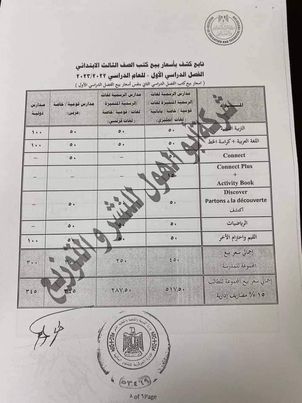 ـبالنسبة لأسعار الكتب المطورة للصف الثالث الابتدائى جاءت كالتالى: