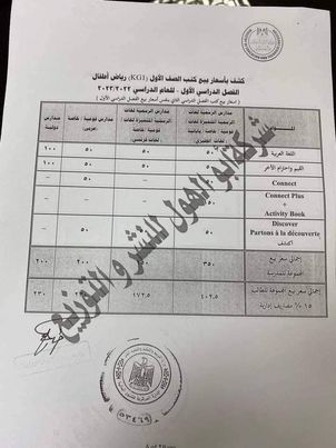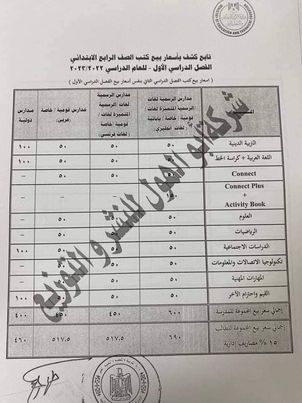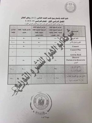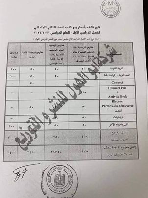 ـ سعر بيع الكتب للمدارس الرسمية لغات واللغات الرسمية والقومية والخاصة " لغات فرنساوى"، 250 جنيها للمدرسة، و287.50، للطالب.