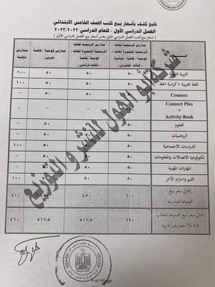 وحددت وزارة التعليم، اسعار الكتب للصف الخامس الابتدائى كالتالى: