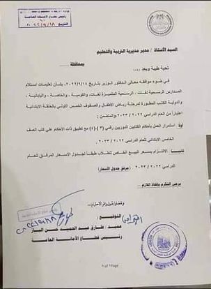 ـ اسعار الكتب المطورة للمدارس القومية والخاصة عربى 300 جنيه للمدرسة و345 للطالب.