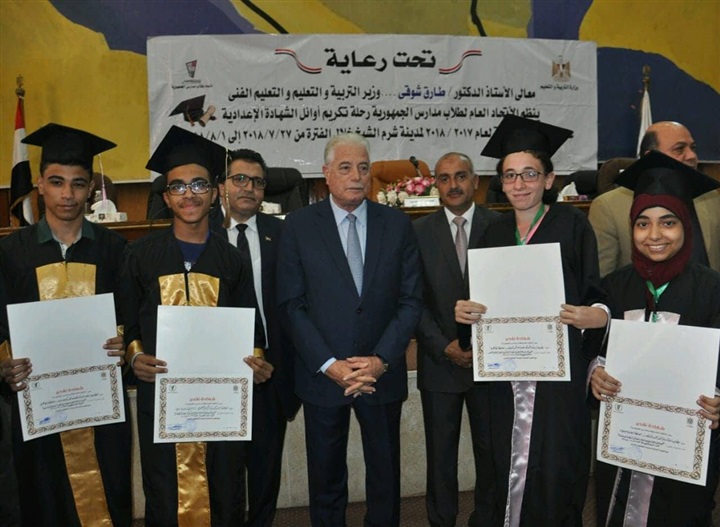 كرم اللواء خالد فودة محافظ جنوب سيناء اليوم أوائل الشهادة الإعدادية على مستوى الجمهورية وذلك بمدينة الطور خلال رحلتهم لشرم الشيخ والتي نظمتها وزارة التربية والتعليم والتعليم الفني.