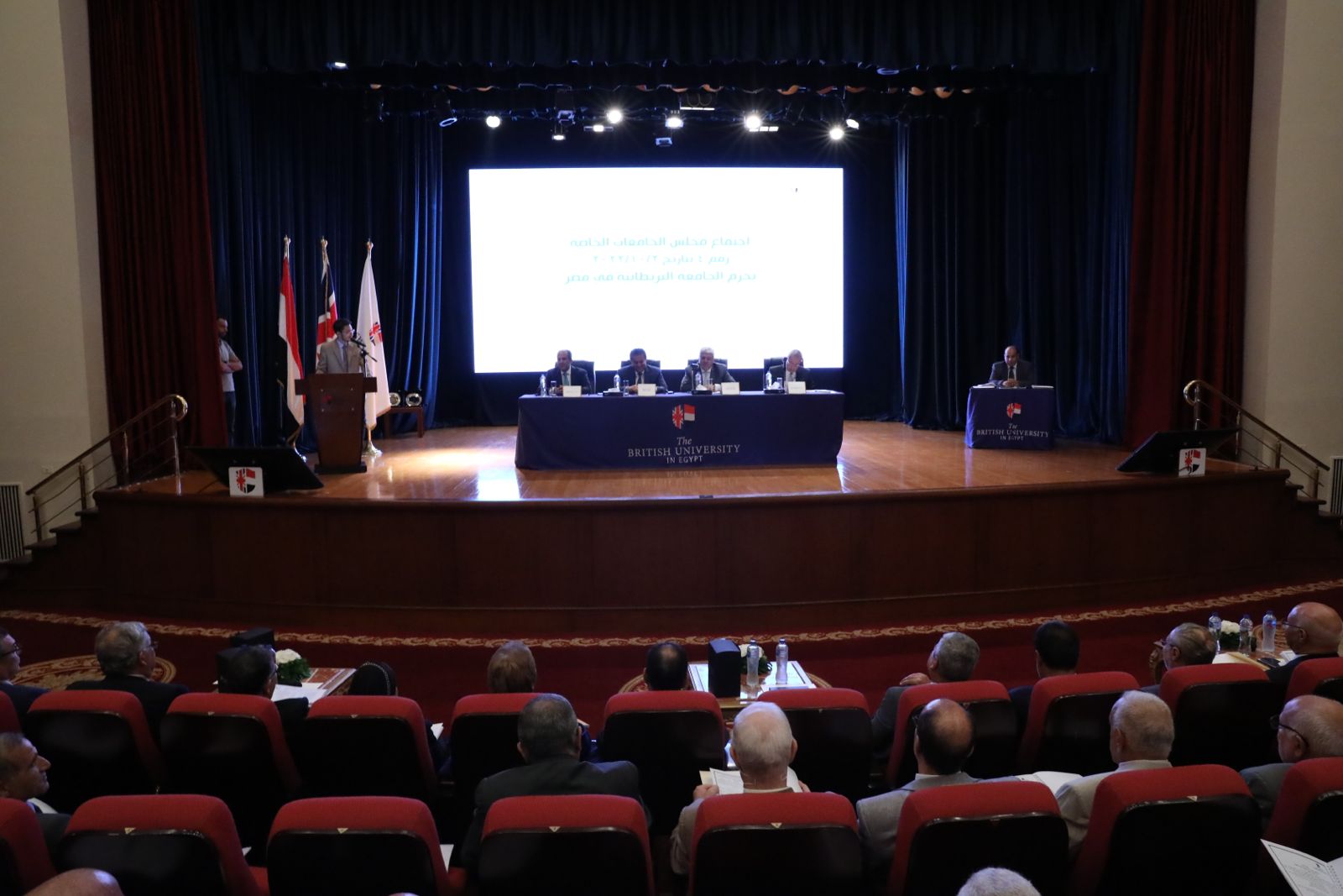 واستمع المجلس إلى عرض قدمه محمد لطفي رئيس الجامعة البريطانية، استعرض فيه جهود الجامعة البريطانية في تحسين جودة التعليم وتعزيز البحث العلمي، بما يتماشى مع استراتيجية الدولة المصرية لبناء الإنسان ورؤية مصر 2030، مشيرًا إلى توقيع الجامعة البريطانية بروتوكول تعاون مع مبادرة "حياة كريمة"، فضلًا عن مُشاركة الجامعة في الاستعداد لمؤتمر قمة المناخ COP - 27، الذي تستضيفه مدينة شرم الشيخ، وإطلاق نموذج دولي لمُحاكاة قمة المُناخ لتدريب وتأهيل الطلاب للمُشاركة في مؤتمر شرم الشيخ، بالإضافة إلى اطلاق "ماراثون من أجل المناخ"، وذلك في إطار اهتمام الجامعة بأداء دورها لخدمة المجتمع.