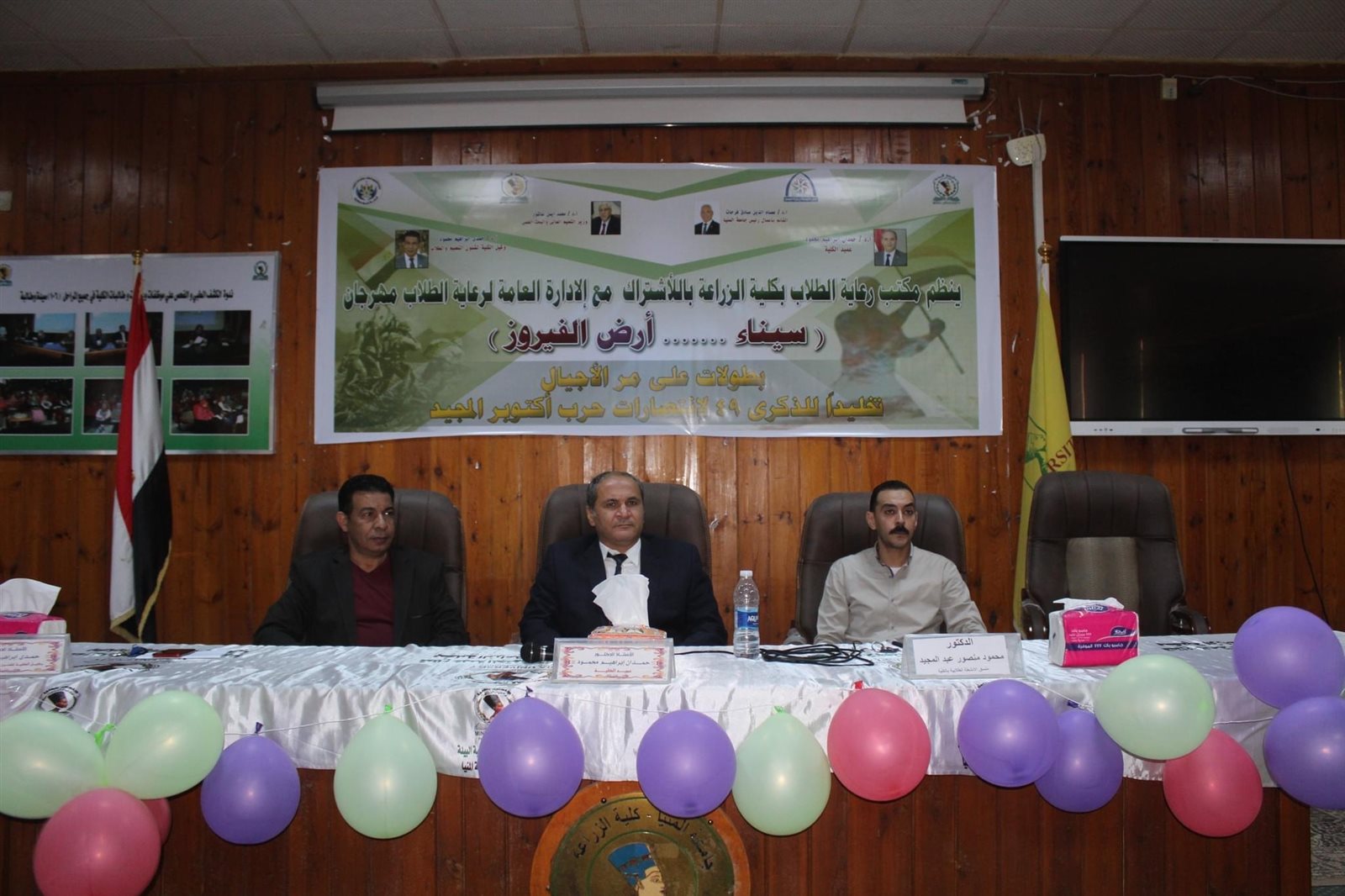 أعلن الدكتور عصام فرحات القائم بأعمال رئيس جامعة المنيا، عن انطلاق أولى سلسلة الندوات التوعوية التي تعقدها الجامعة ضمن مهرجان الأنشطة الطلابية بجميع كليات الجامعة الـ20، حول الدروس المستفادة من حرب أكتوبر المجيدة وذلك تحت شعار "سيناء أرض الفيروز.. بطولات على مر الأجيال"؛ والتي بدأتها بعقد 10 ندوات توعوية بكليات "الهندسة، والتمريض، والزراعة، والحقوق، والتربية للطفولة المبكرة، والطب البيطري، والطب البشري، والتربية الفنية، والسياحة والفنادق، والألسن"، على أن تستكمل الفعاليات بالتولي في باقي كليات جامعة المنيا حتى نهاية شهر أكتوبر.