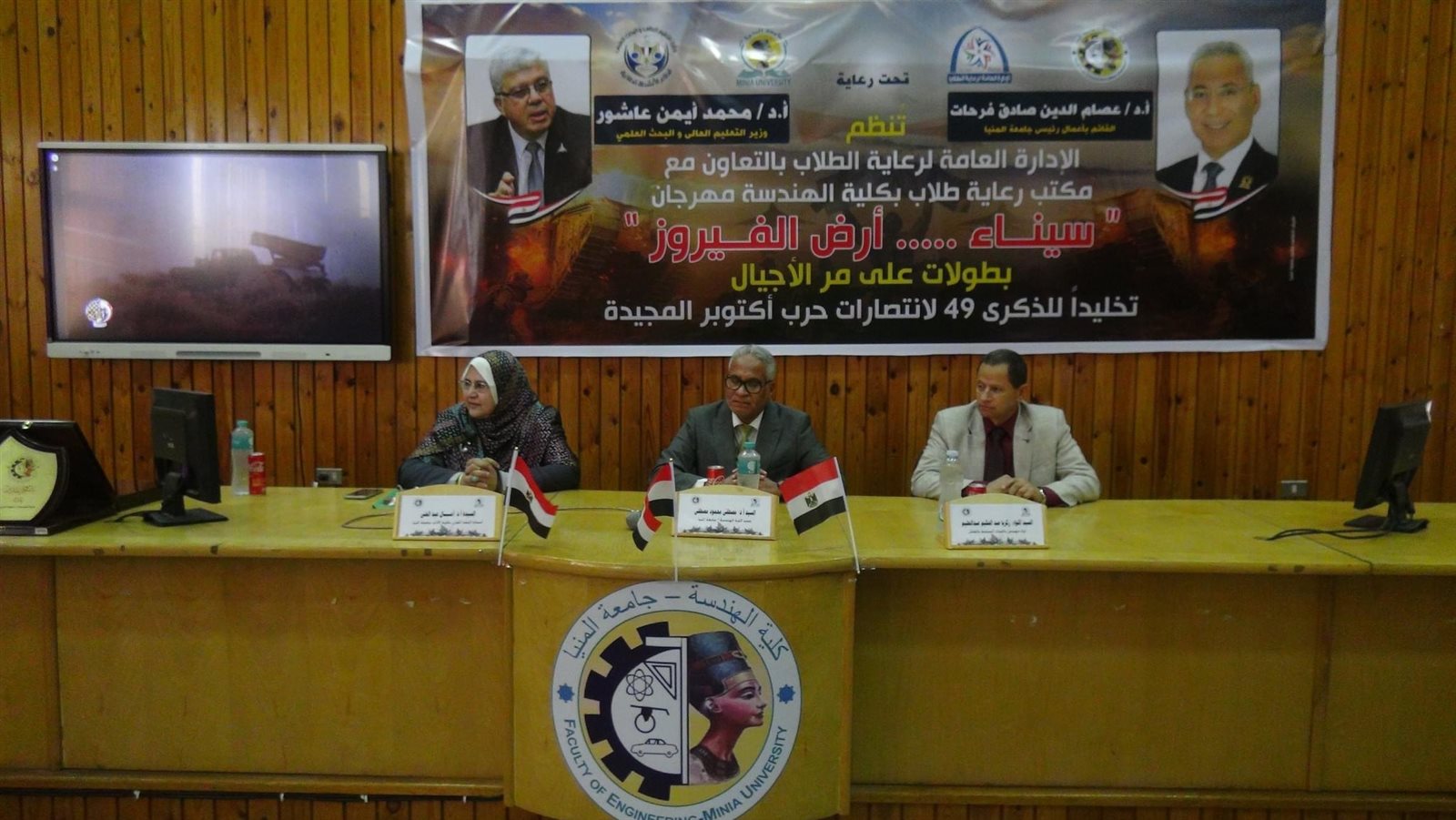 ونظمت الندوات الإدارة العامة لرعاية الطلاب جامعة المنيا، ومكاتبها بالكليات، بالتعاون مع طلاب الاتحادات الطلابية، وأسرة طلاب من أجل مصر، تنفيذًا لخطة جامعة المنيا التوعوية لطلابها، وحاضرها عدد من القادة العسكريين المعاصرين لحرب أكتوبر، والمحاربين القدامى، والأساتذة المتخصصين، وعمداء الكليات ووكلائها، مستعرضين أهم الدروس المستفادة من حرب أكتوبر 73، وتجاوز العقبات ورفع علم مصر علي سيناء أرض الفيروز، ونجاح ترابط الجبهة الداخلية في دعم عزيمة الجيش المصري، والتي كانت سببًا في دفع الوطن إلى الأمام والانطلاق نحو آفاق التطوير، ومواجهة التحديات والمؤامرات التي تحاك بالوطن.