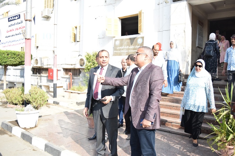 رئيس جامعة بني سويف يجري جولة تفقدية بالحرم الجامعي