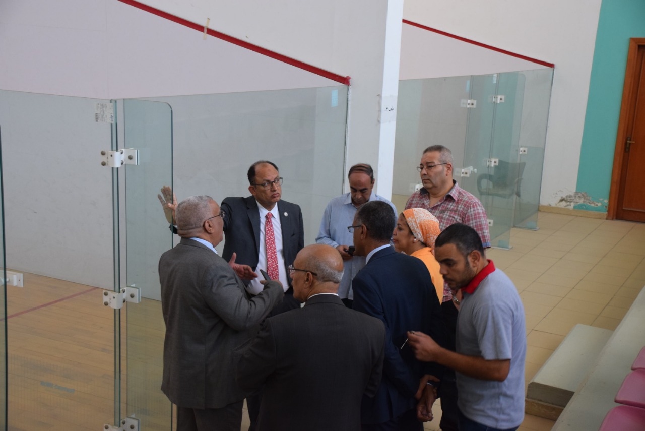 رئيس جامعة حلوان يتفقد الصالة المغطاة