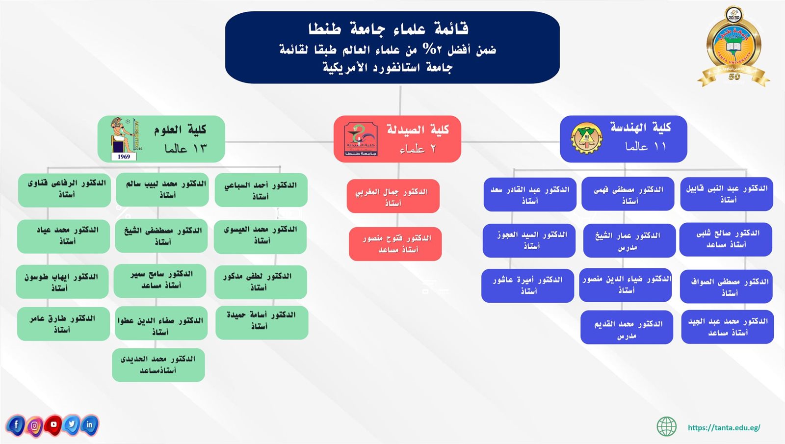 26 أستاذًا بـ«جامعة طنطا» بقائمة أفضل 2% من علماء العالم بقائمة «استانفورد الأمريكية»