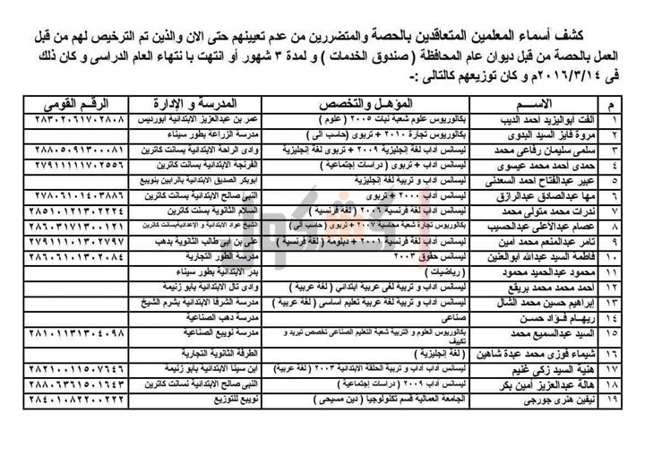 ننشر كشف أسماء معلمى الحصة بجنوب سيناء