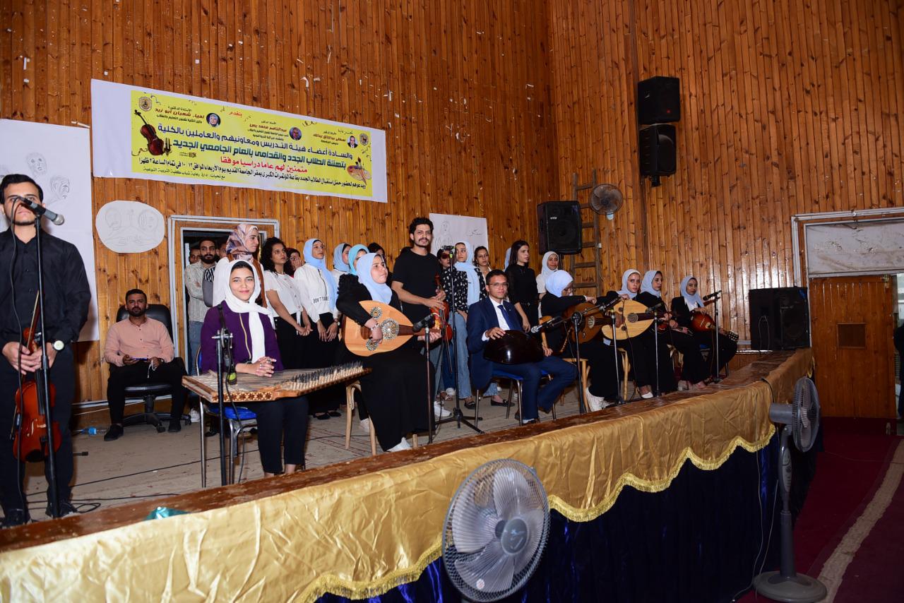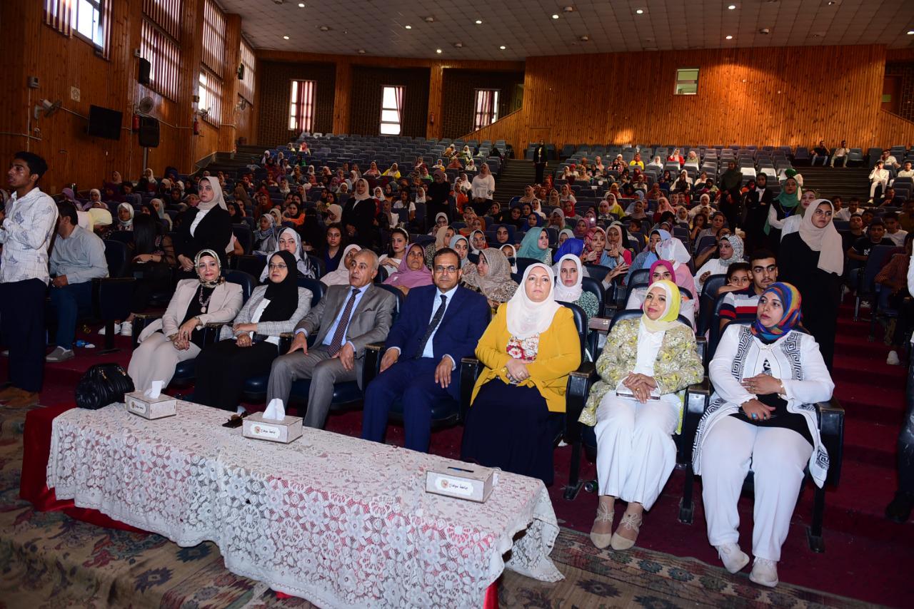 وخلال كلمته هنأ رئيس جامعة سوهاج، طلاب الكلية بالعام الدراسي الجديد، موضحًا أن الكلية تلعب دور محوري في تقديم خريج للمجتمع على مستوى عالي من الخبرة والثقافة، كما تتيح للطالب الخدمة التعليمية الكاملة والمتميزة على أيدي نخبة من أفضل الأساتذة والمتخصصين في مجال التربية الفنية، الاقتصاد المنزلي، التربية الموسيقية والإعلام التربوي، مطالبًا الطلاب بضرورة التواصل المستمر مع الأساتذة ومسئولي الإدارات ولا يترددوا ابدًا في طرح مشكلة أو الاستفسار عن معلومة، متمنيًا عام دراسي ملئ بالنجاح والتفاؤل.