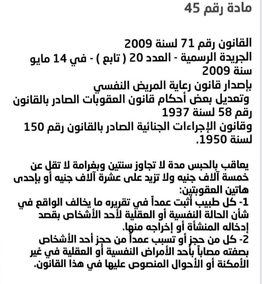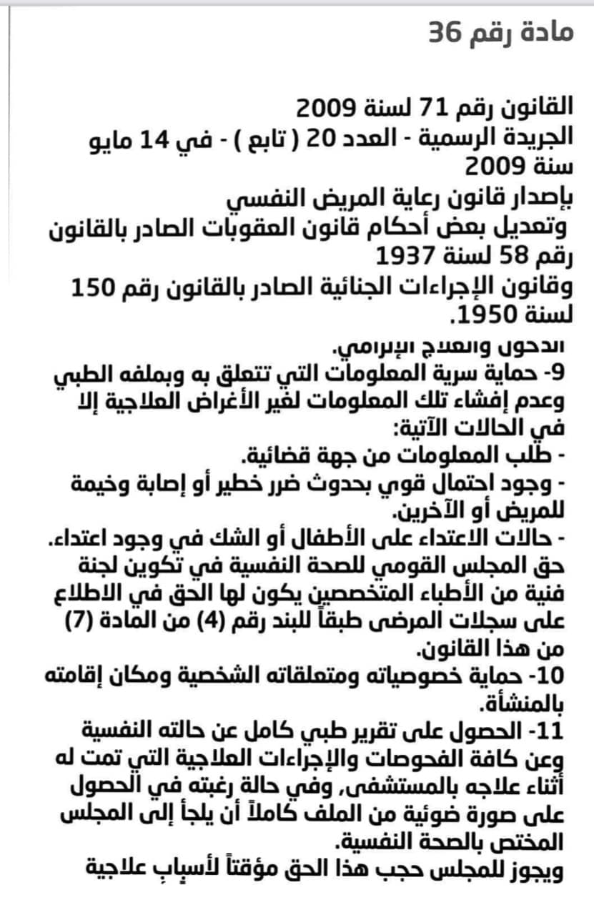 أوضحت المحامية مها أبو بكر، عقوبة تداول معلومات عن الحالة الصحية والنفسية للفنانية شيرين عبد الوهاب، بعد دخولها لمصحة نفسية، وقالت أن قانون الصحة النفسية يمنع تداول معلومات عن المرضى لا اسم ولا معلومة ولا موعد حضور ولا موعد خروج، مشيرة إلى أن ما يحدث مع المطربة شيرين عبد الوهاب يشكل جريمة إفشاء أسرار..والقانون أوضح عقوبة من يفشي هذه الاسرار، سواء من عائلتها أو من الإعلام.