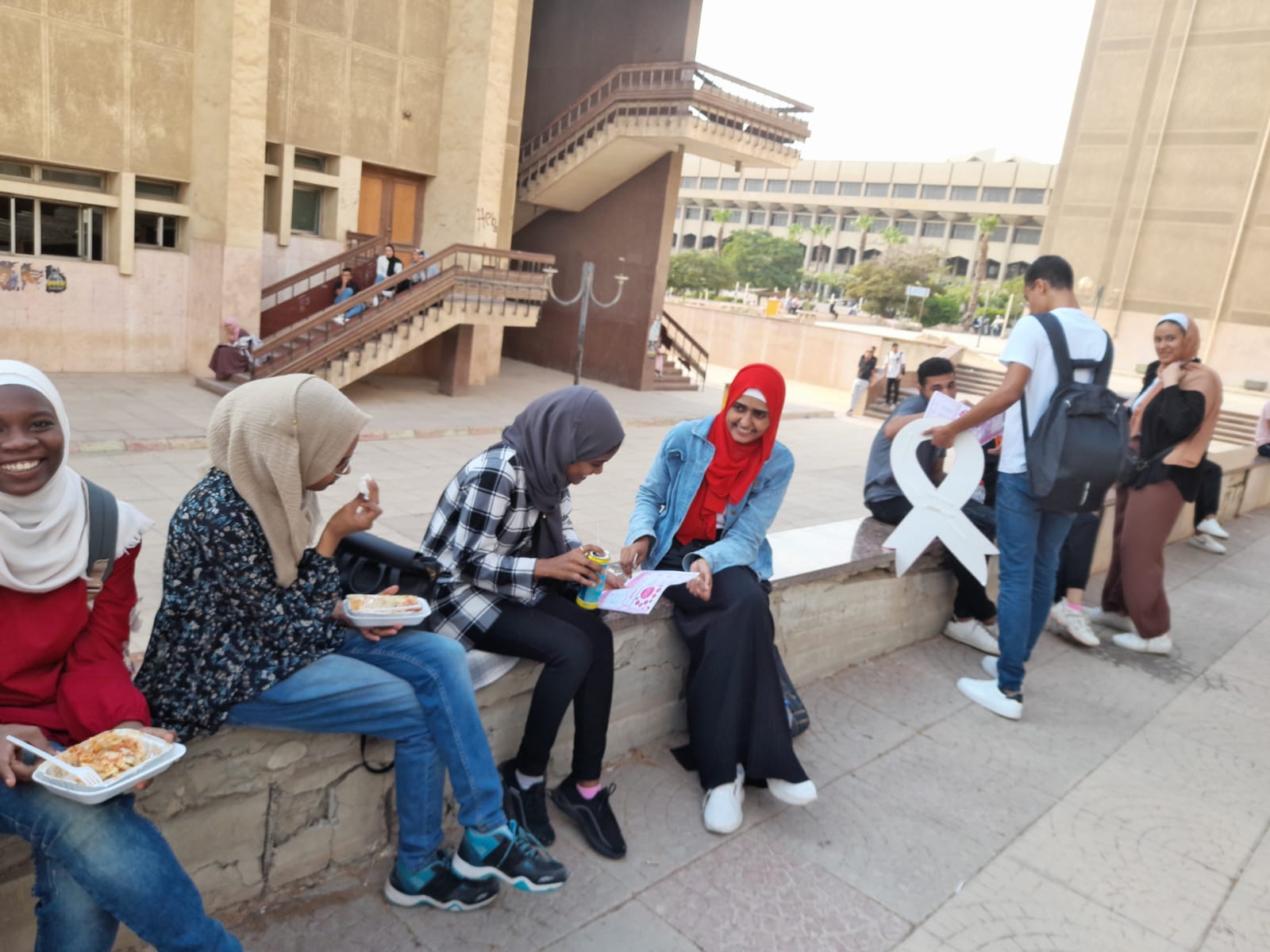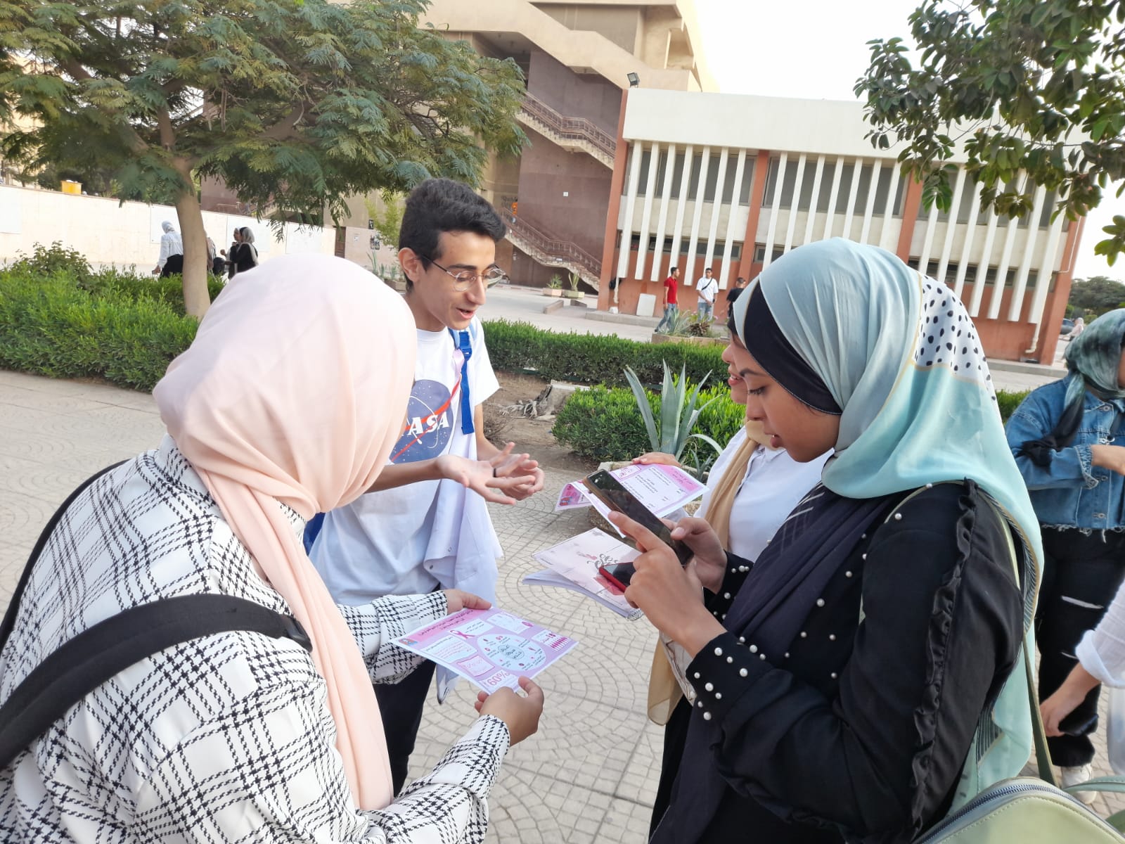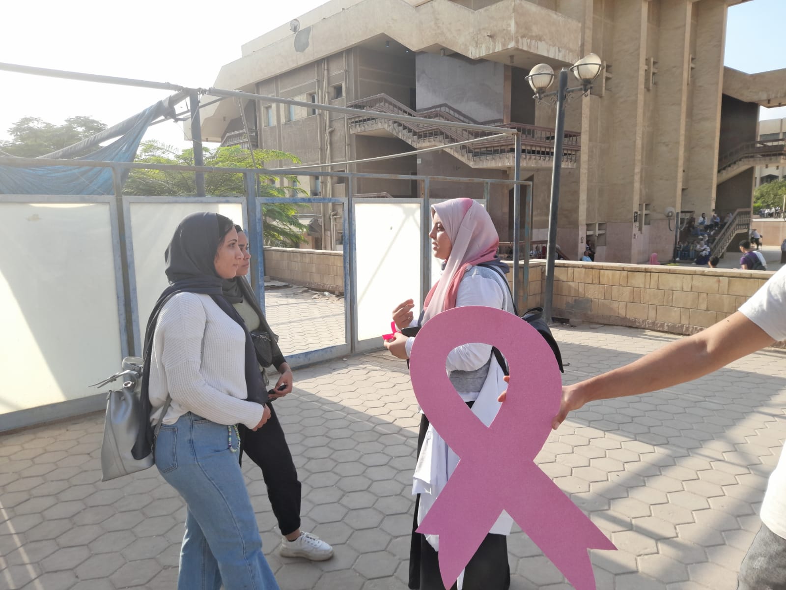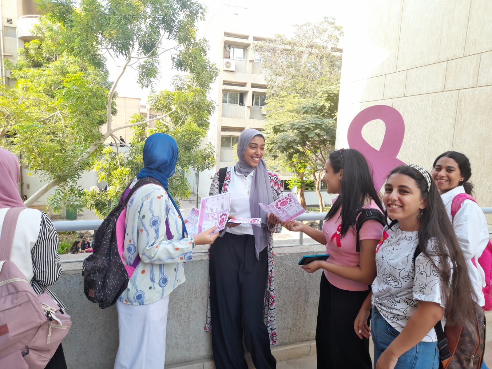 وفي إطار فعاليات التثقيف الصحي ورفع الوعي بأورام الثدي، قام طلبة برنامج البيوتكنولوجي بحملة توعية لطلاب جامعة حلوان من خلال توزيع فلايرز تعريفي عن كل ما يتعلق بالمرض؛ وتفيد هذه التوعية الطلاب في حياتهم وهى غير قاصرة عليهم فهى رسالة يحملونها إلى أقاربهم وأصدقائهم وجيرانهم.