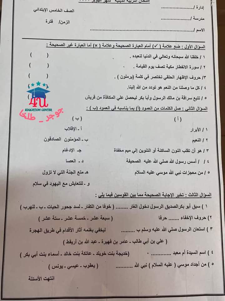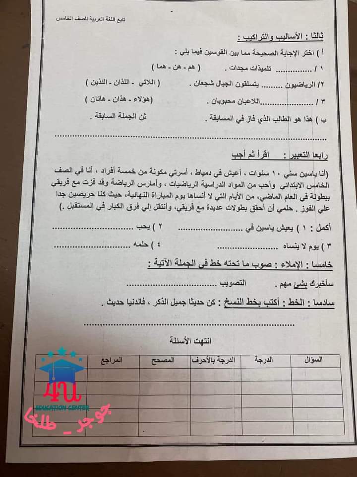 ويمكن مطالعة صور الامتحان للصفين الرابع والخامس الابتدائي من الصور التالية: