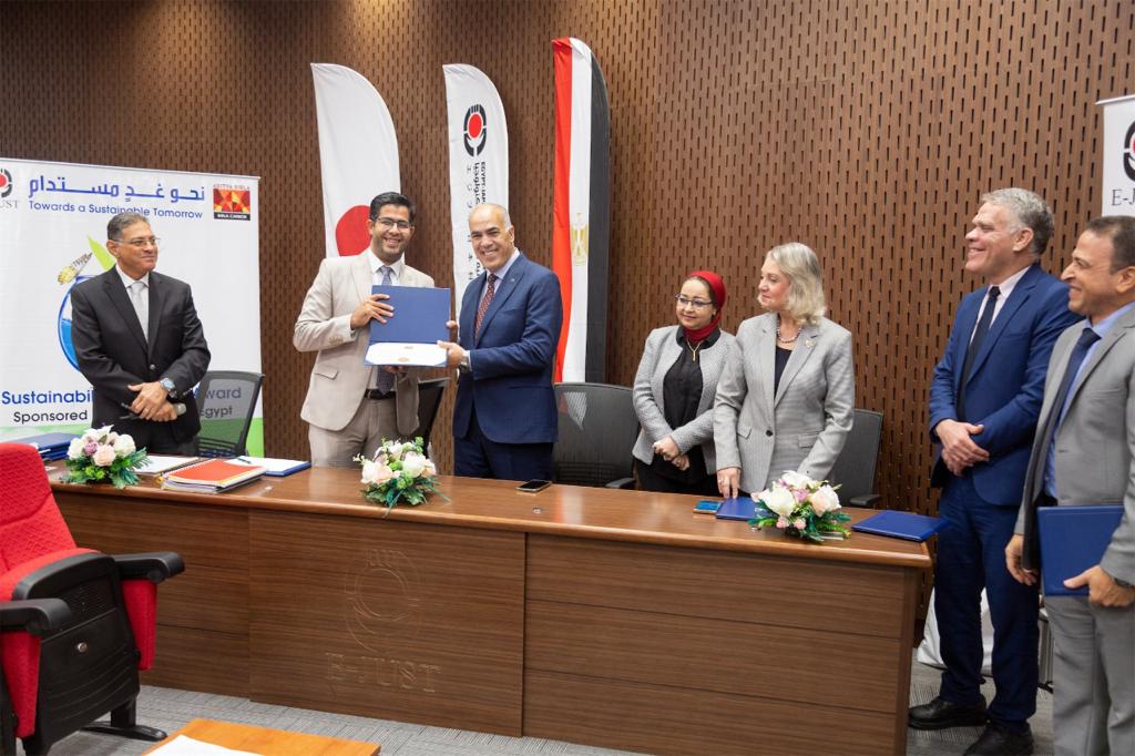 نظمت الجامعة المصرية اليابانية للعلوم والتكنولوجيا حفلا لتسليم جوائز مسابقة التنمية المستدامة التي نظمتها كلية هندسة مصادر الطاقة والبيئة تحت رعاية الدكتور عمرو عدلي رئيس الجامعة المصرية اليابانية للعلوم والتكنولوجيا، حيث قام الدكتور سامح ندا نائب الجامعة المصرية اليابانية للعلوم والتكنولوجيا للشئون الأكاديمية والتعليم والدكتورة منى جمال الدين إبراهيم عميد كلية هندسة مصادر الطاقة والبيئة والكيمياء والبتروكيماويات بالجامعة، بتسليم الجوائز للطلاب الفائزين فى المسابقة والتي تم تنظيمها تحت شعار "تغير المناخ"، وذلك بالتعاون مع شركة بيرلا كربون مصر، تزامنًا مع استضافة مصر مؤتمر الأمم المتحدة للتغيرات المناخية cop27 في شرم الشيخ.