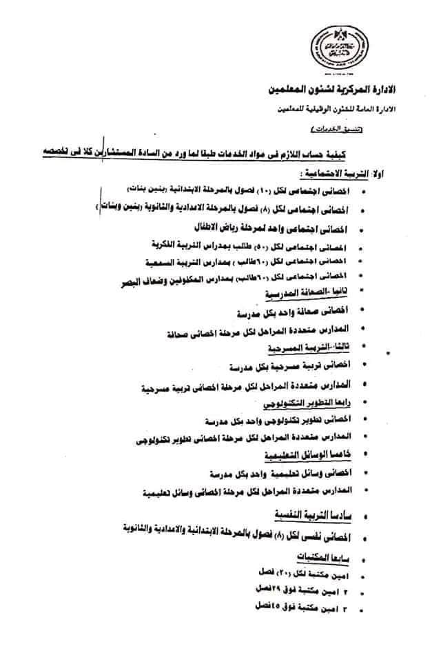 - اخصائي وسائل تعليمية واحد بكل مدرسة