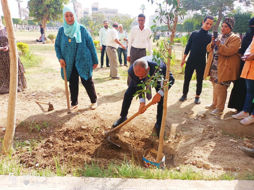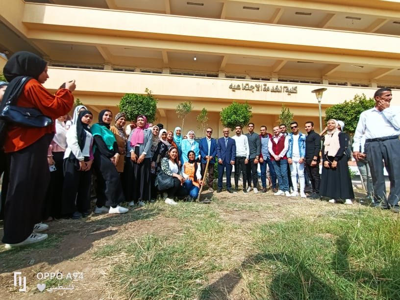 خدمة اجتماعية جامعة حلوان تطلق المعسكر البيئي لتشجير وتجميل الكلية