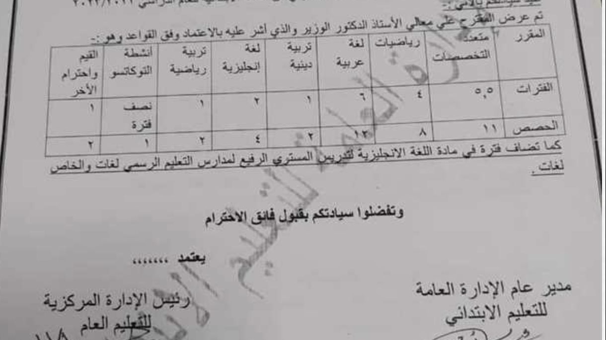 عاجل.. التعليم تعتمد عدد الحصة المقررة للصفوف الأولى بالمواد الدراسية